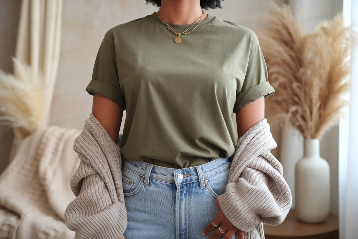 Fashion Shirt Clothing Casual Green Mockup Female Olive Denim T