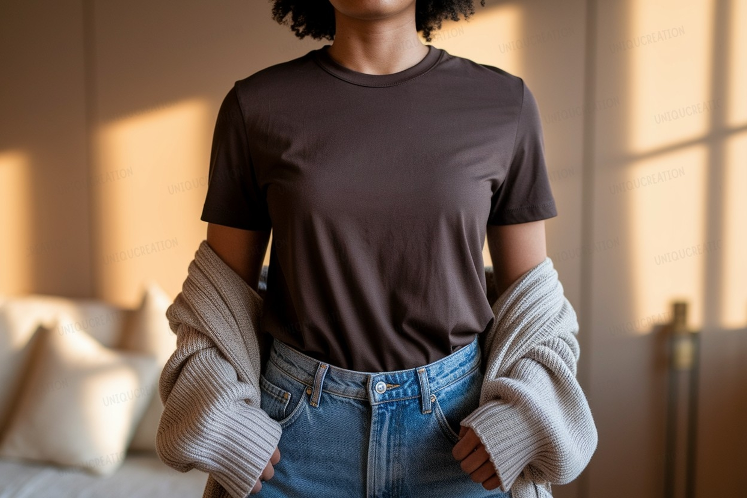 Fashion Shirt Clothing Casual Mockup Apparel Brown Blue Jeans Cardigan