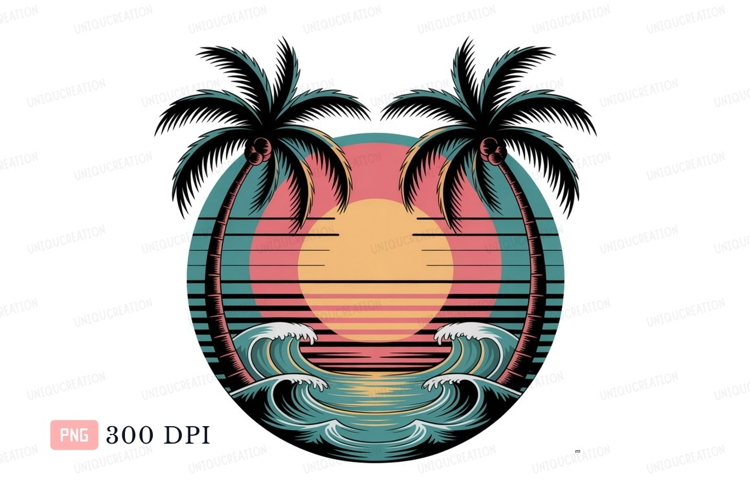 Palms ocean sunset waves beach example image 1