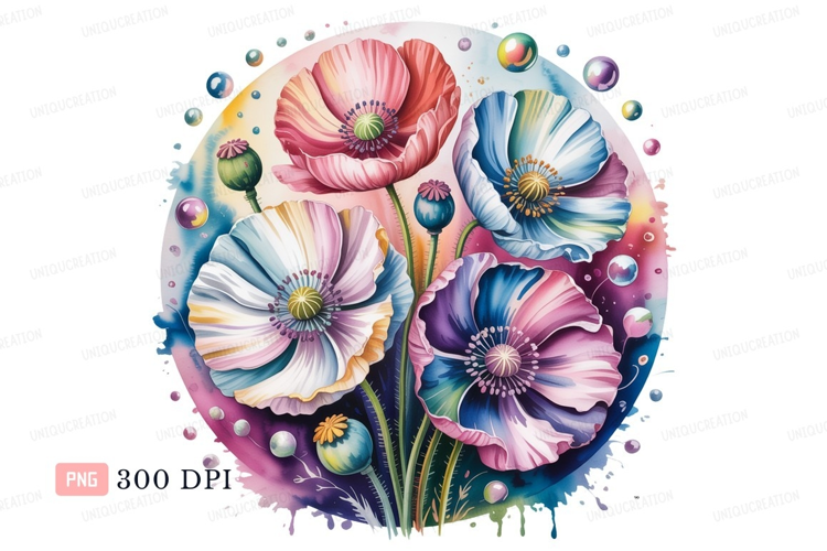 Similar Design Products to Colorful poppies with water bubbles flowers petals