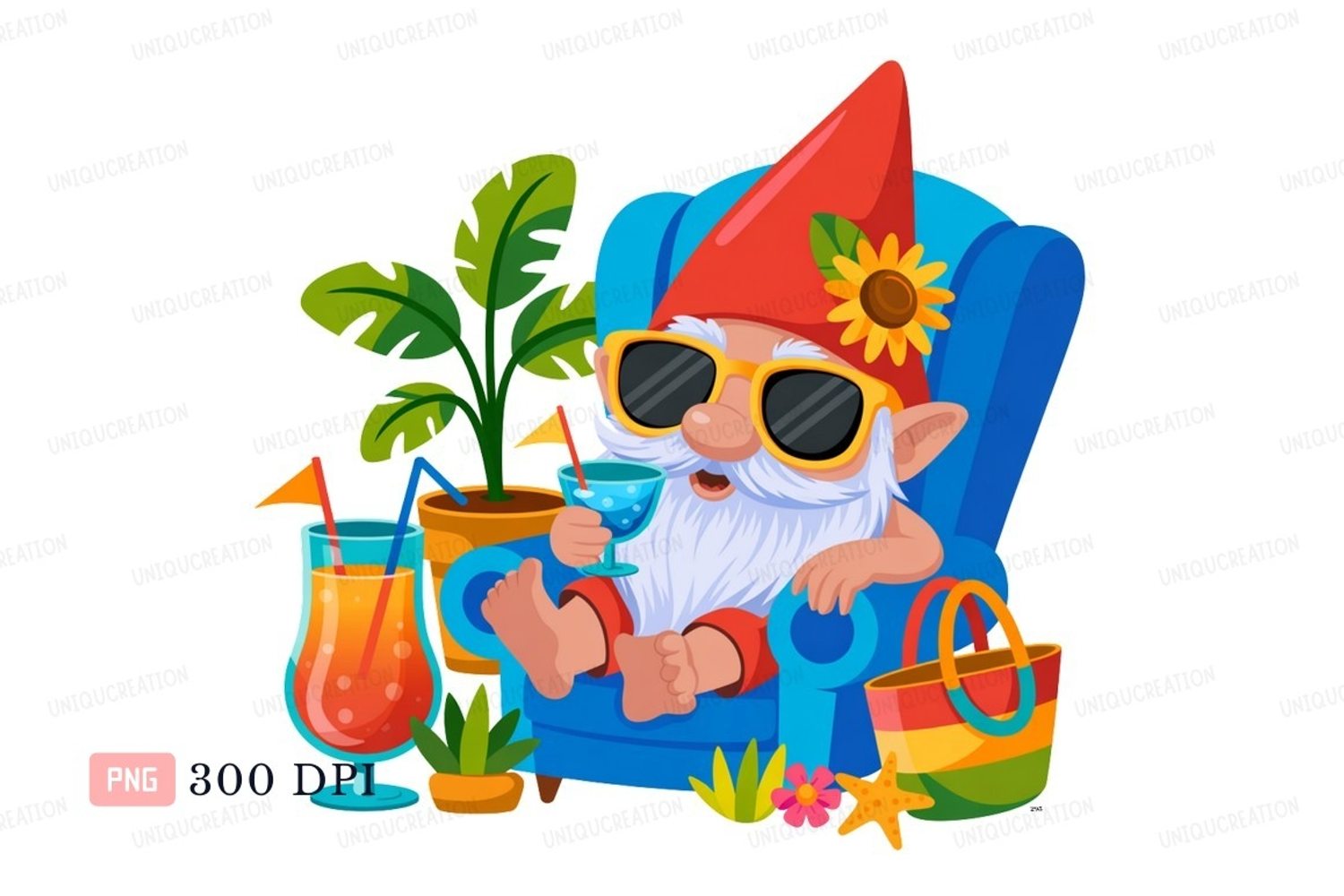 Relaxing gnome with drinks and beach bag sunglasses example image 1