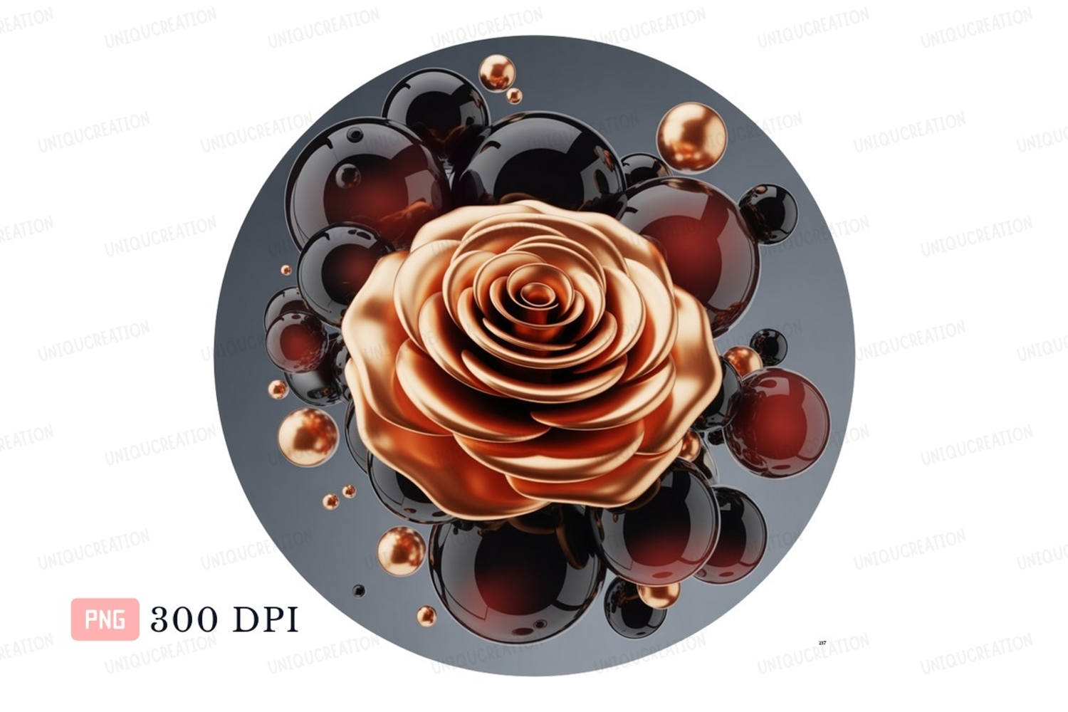 Golden rose surrounded by dark spheres metallic flower example image 1