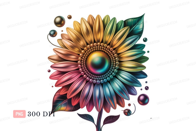 Metallic rainbow sunflower with pearls and bubbles example image 1