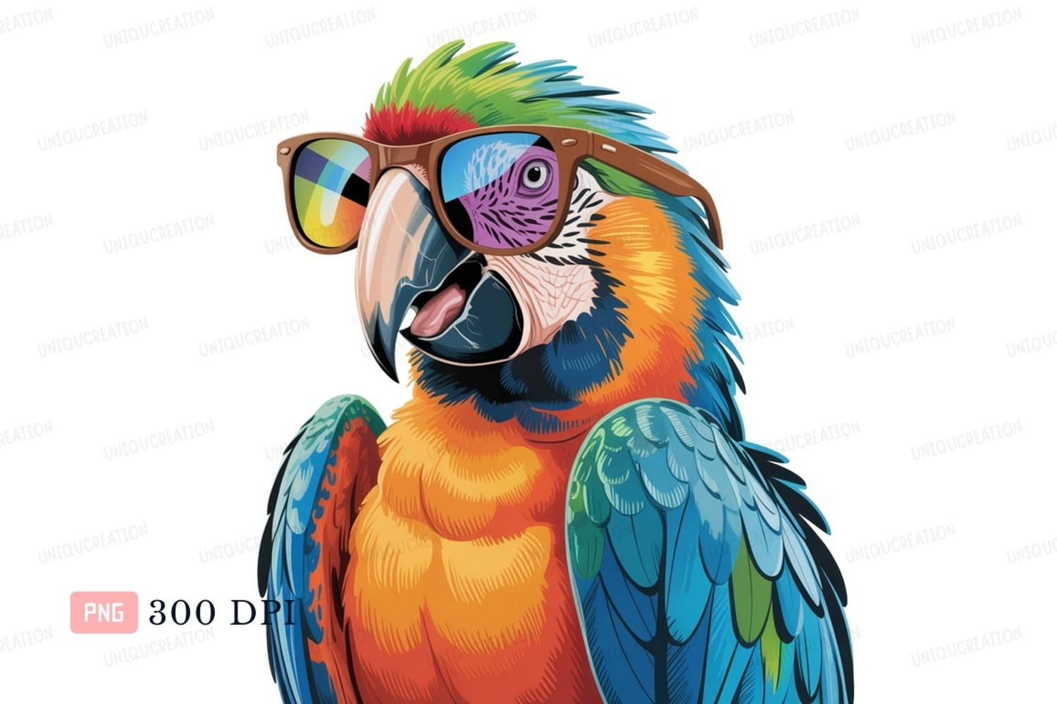 Colorful parrot wearing sunglasses macaw tropical example image 1