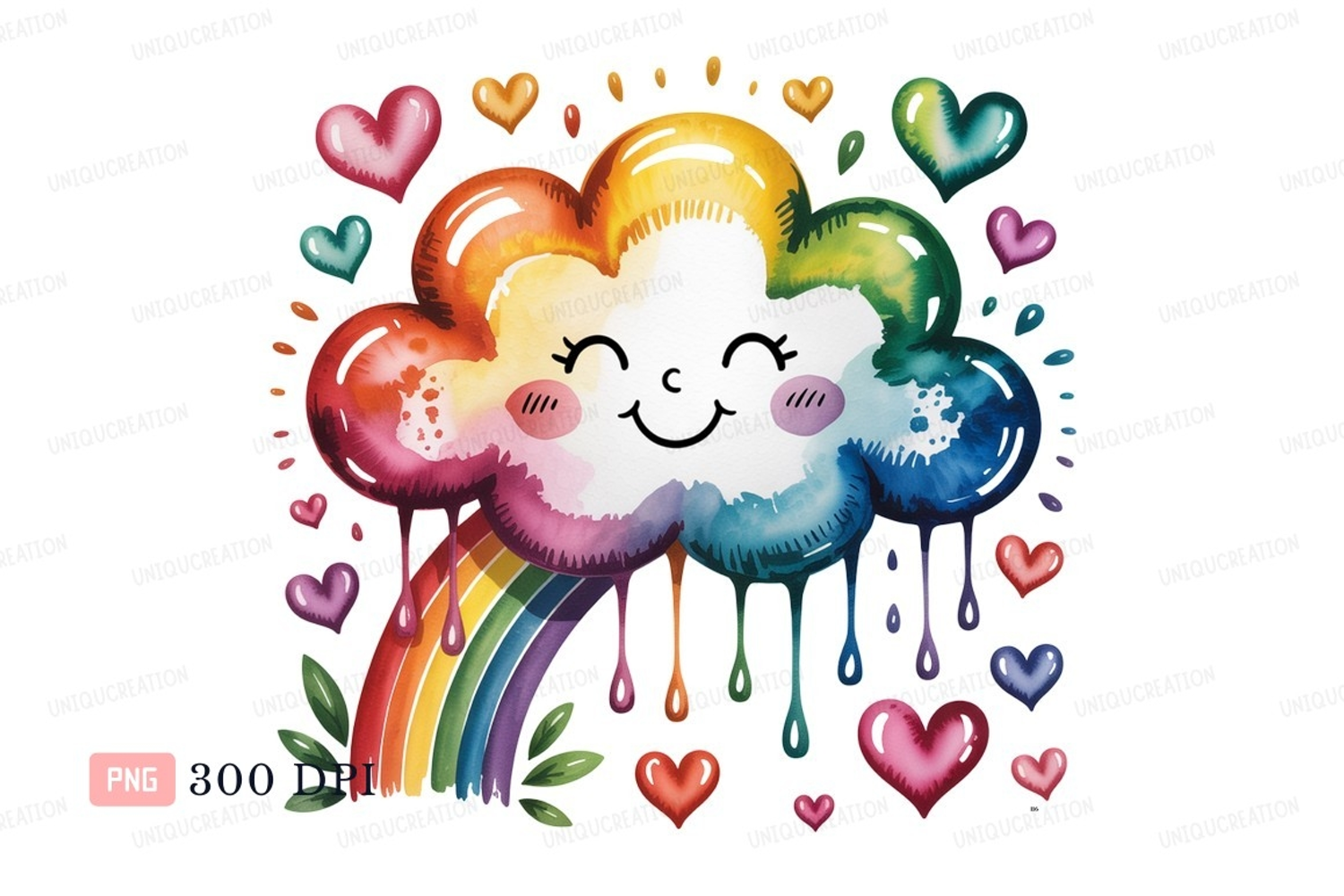 Happy rainbow cloud with hearts colorful example image 1