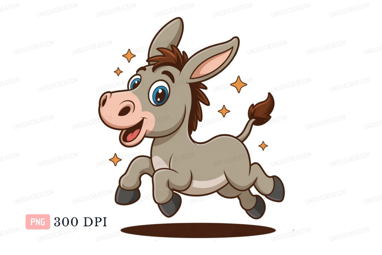 Happy cartoon donkey jumping with stars animal example image 1