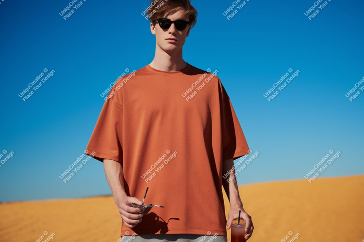 Fashion Man Summer Shirt Orange Drink Desert Sunglasses Sky T