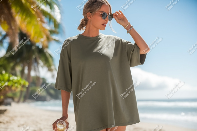 Similar Design Products to Woman wearing oversized olive green t shirt sunglasses
