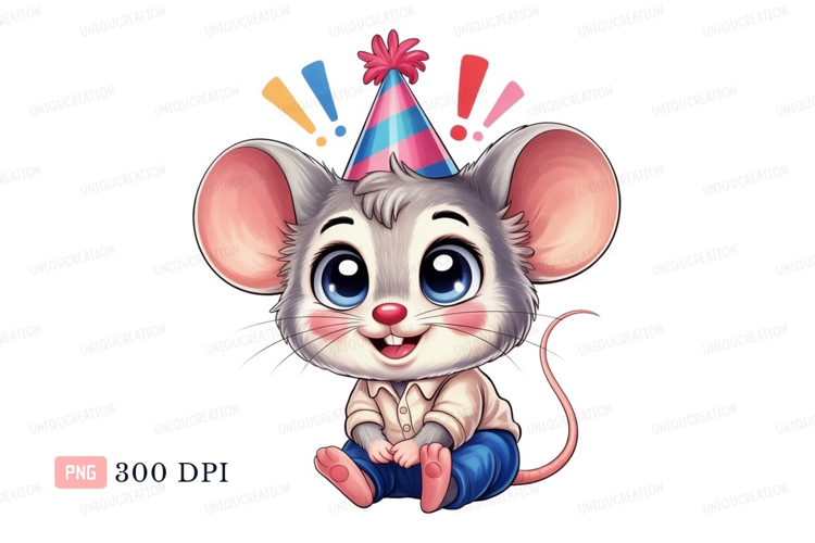 Cute mouse wearing party hat rodent animal example image 1