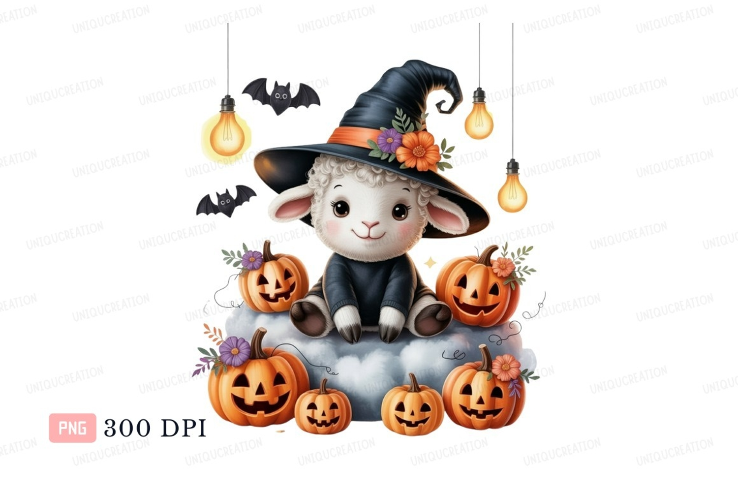 Similar Design Products to Cute witch lamb with pumpkins halloween