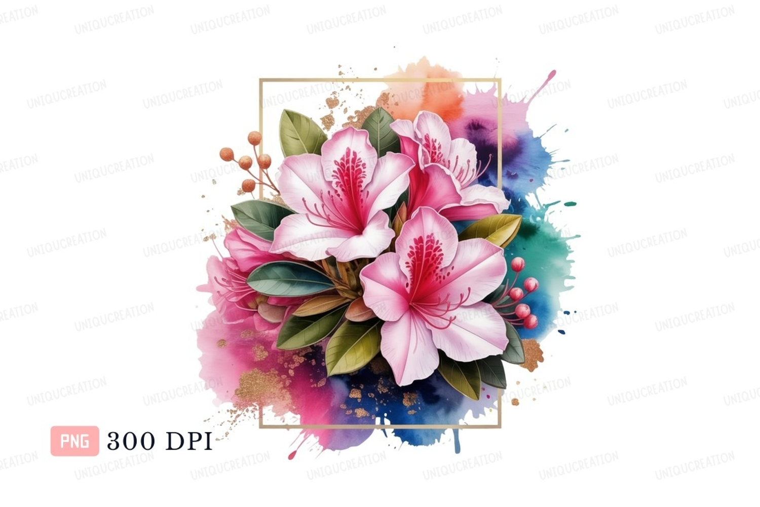 Pink azaleas watercolor splash flowers