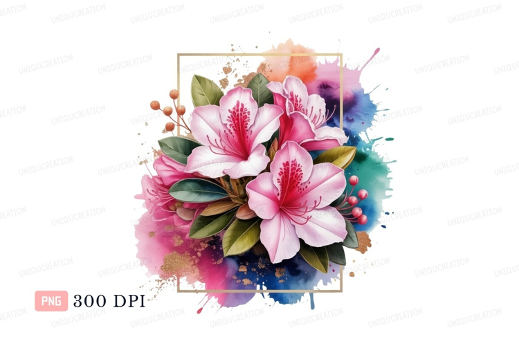 Pink azaleas watercolor splash flowers example image 1