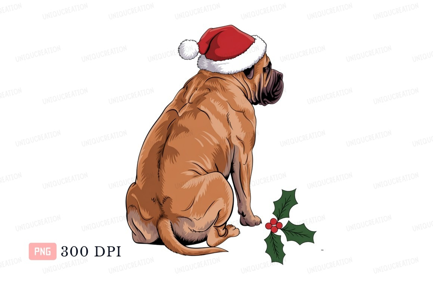 Similar Design Products to Brown dog wearing santa hat with holly canine bullmastiff