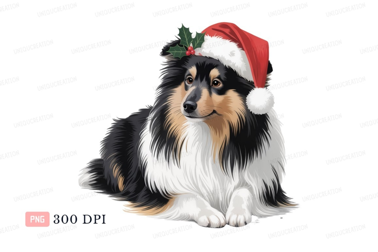 Fluffy dog wearing Christmas hat holly festive example image 1