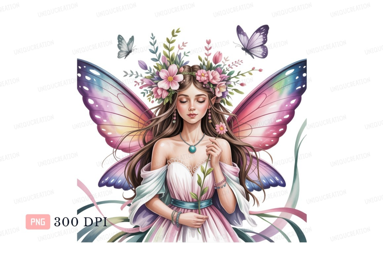 Enchanting fairy with floral crown and butterfly wings example image 1