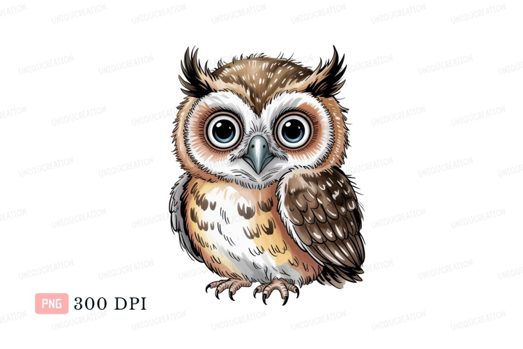 Cute fluffy owl with big blue eyes bird example image 1