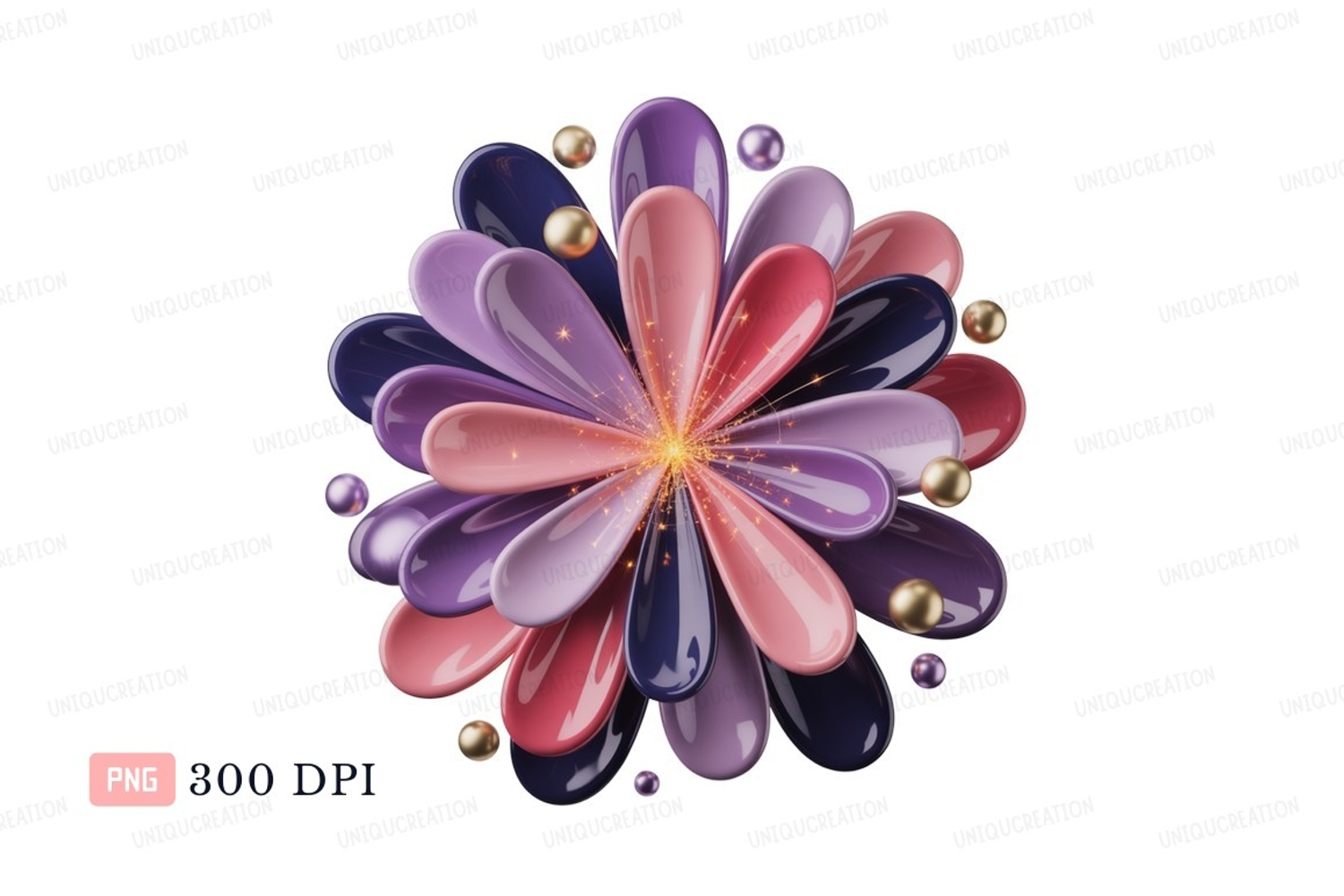 Glossy petal flower with golden spheres petals purple example image 1