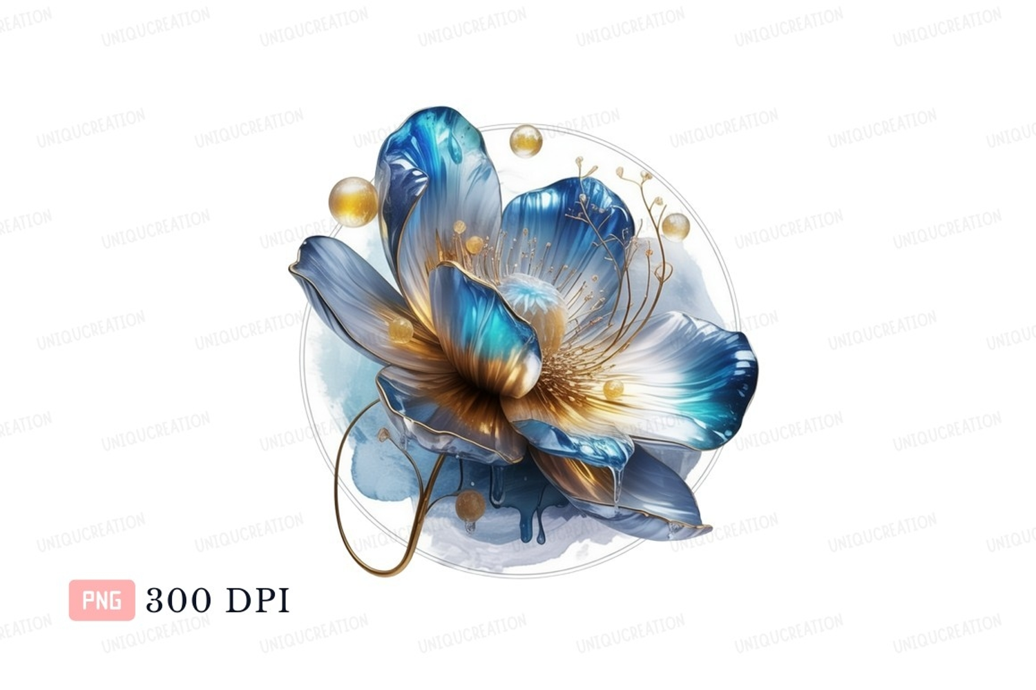 Art Gold Flower Abstract Bloom Blue Petals Chick Ears Droplets