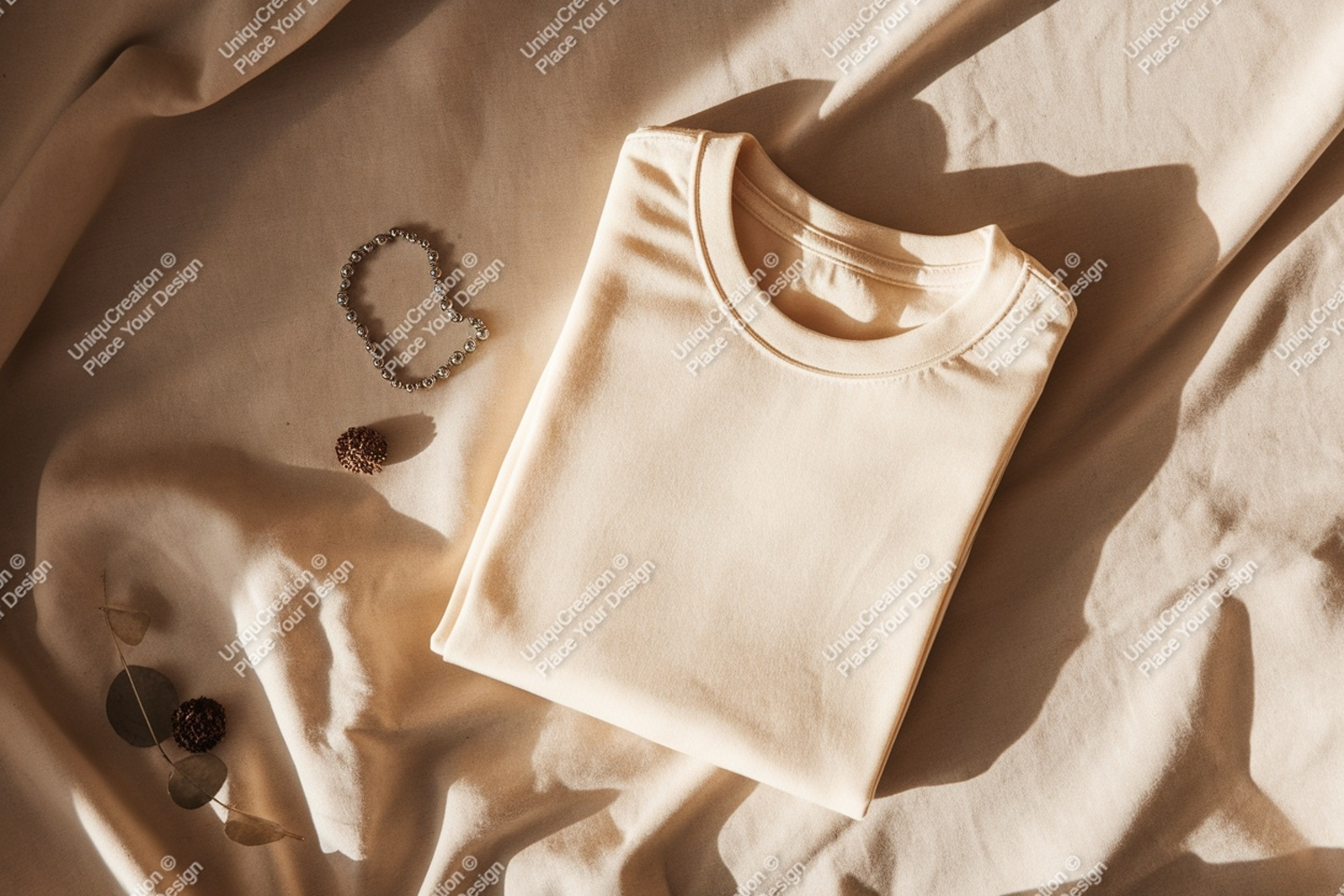 Similar Design Products to Folded cream t shirt with bracelet and dried botanicals