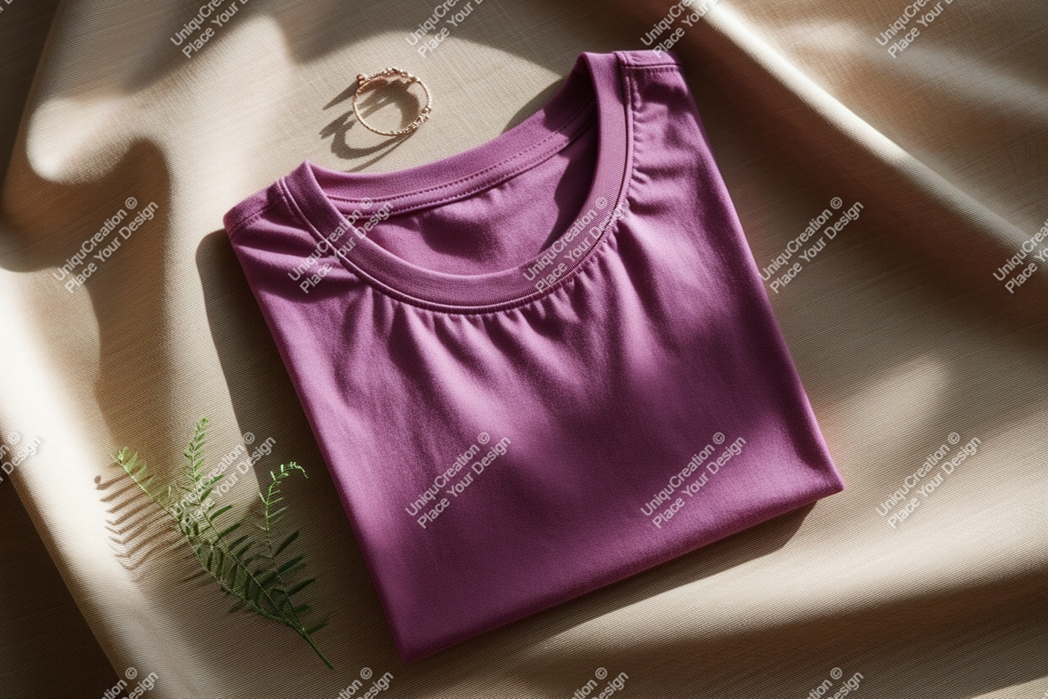 Purple t shirt gold ring fern leaf mockup