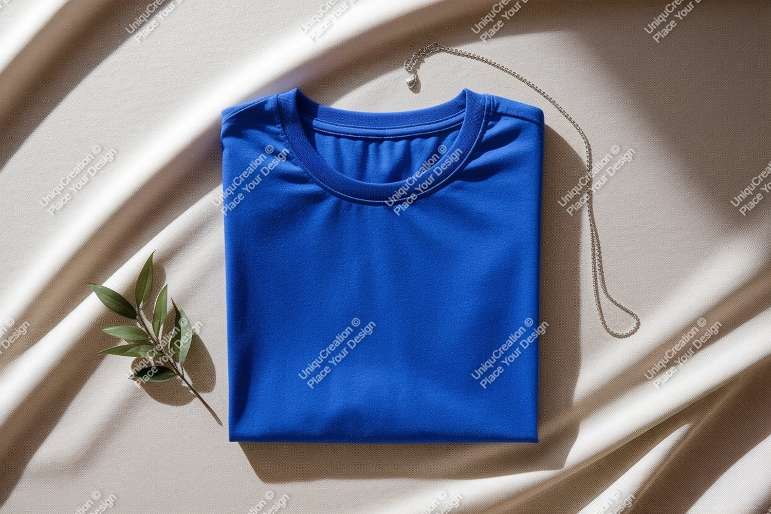 Similar Design Products to Folded blue shirt with necklace and leaf