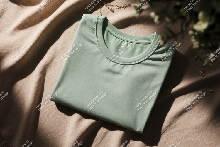 Similar Design Products to Folded pastel green t shirt on textured fabric image