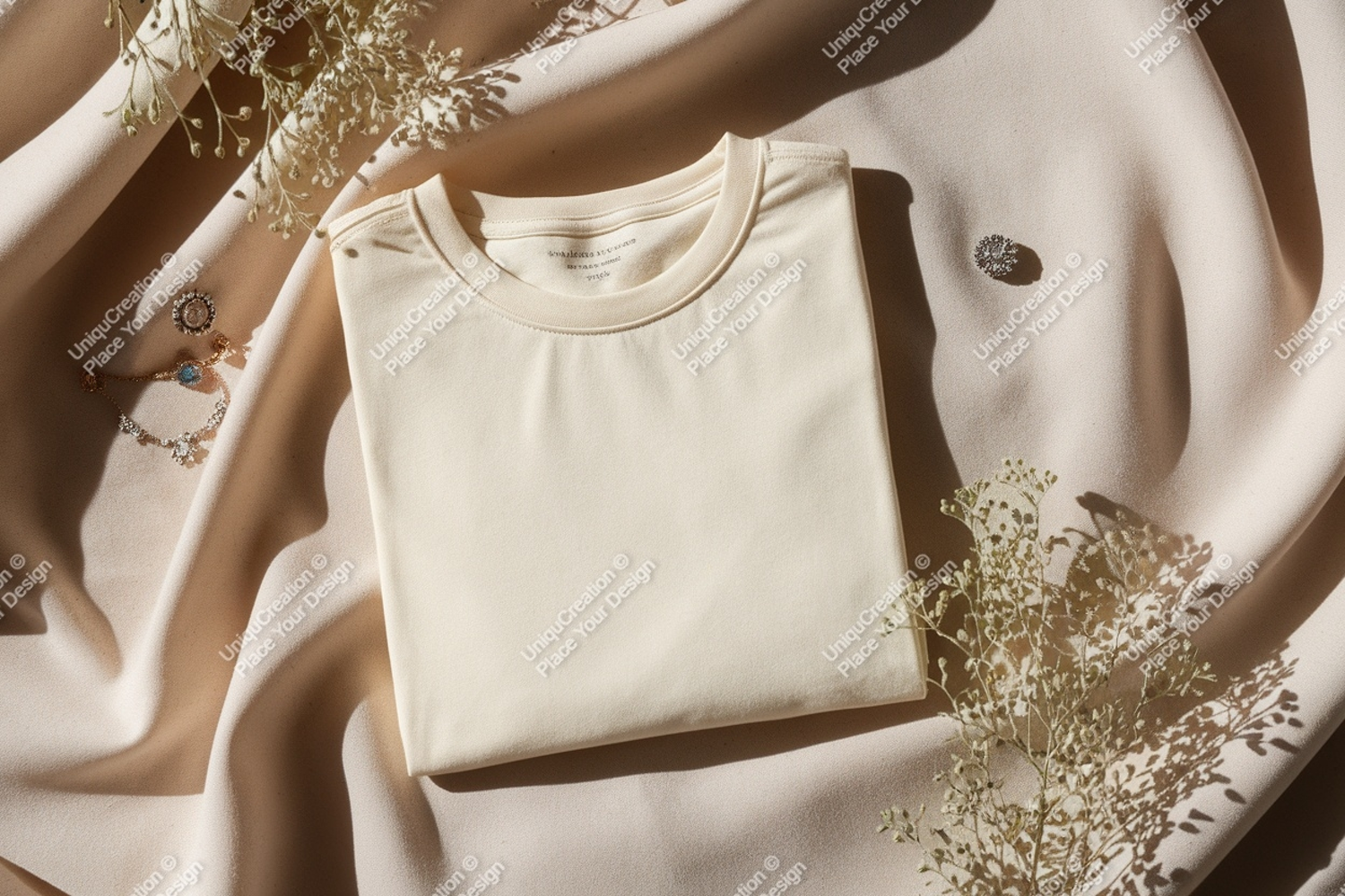 Shirt Flowers Mockup Jewelry Fabric Cream Ring T Dried Bracelet