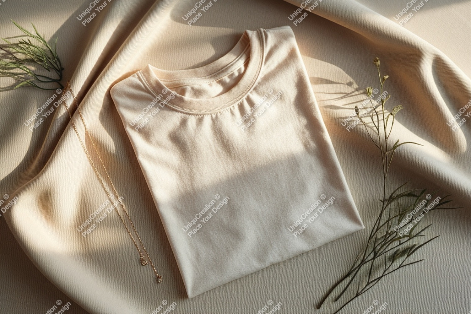 Cream shirt gold necklace delicate plants jewelry example image 1
