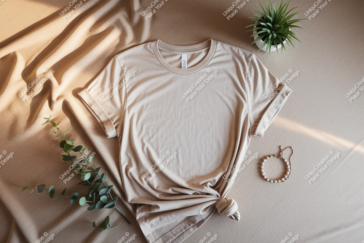 Shirt Clothing Mockup Apparel Jewelry Fabric Plant Beige T Draped
