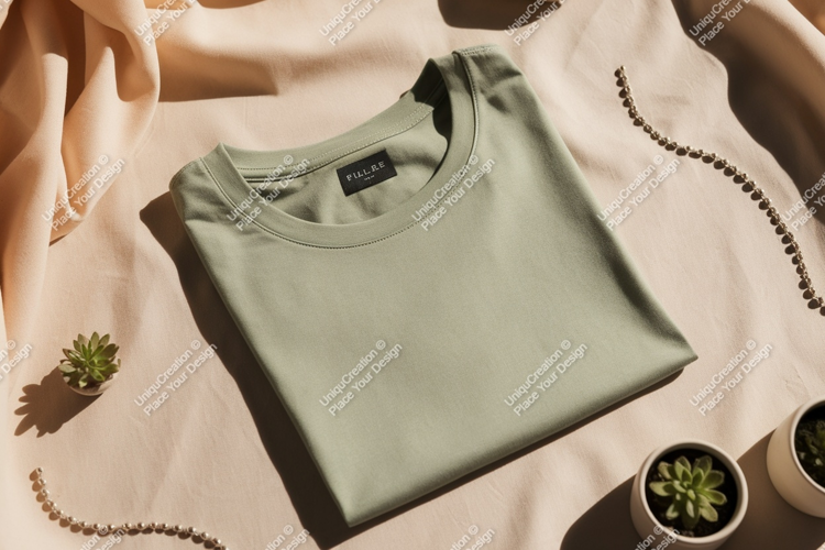 T-shirt Clothing Green Mockup Apparel Fabric Studio Folded Plants Pearls