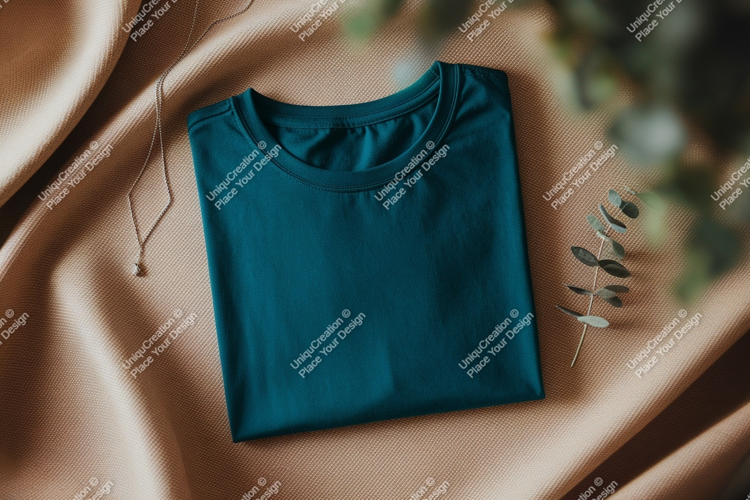 Fashion Shirt Mockup Fabric Plant Teal Folded Necklace Eucalyptus Draped