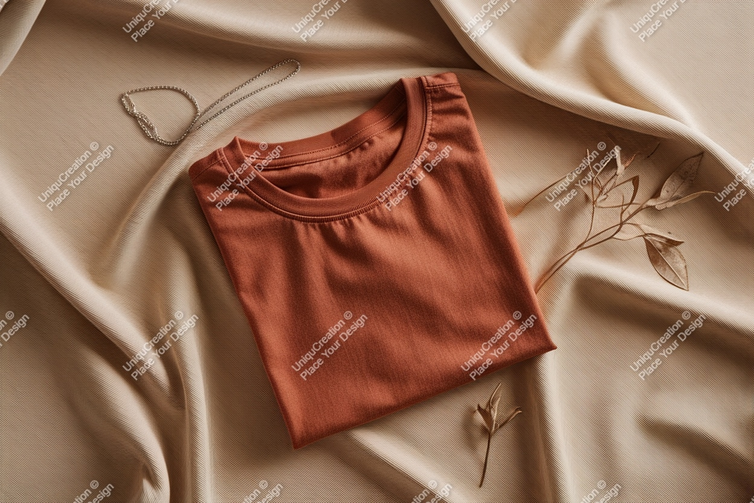 Shirt Clothing Mockup Jewelry Fabric Orange Textile Silver Necklace Terracotta