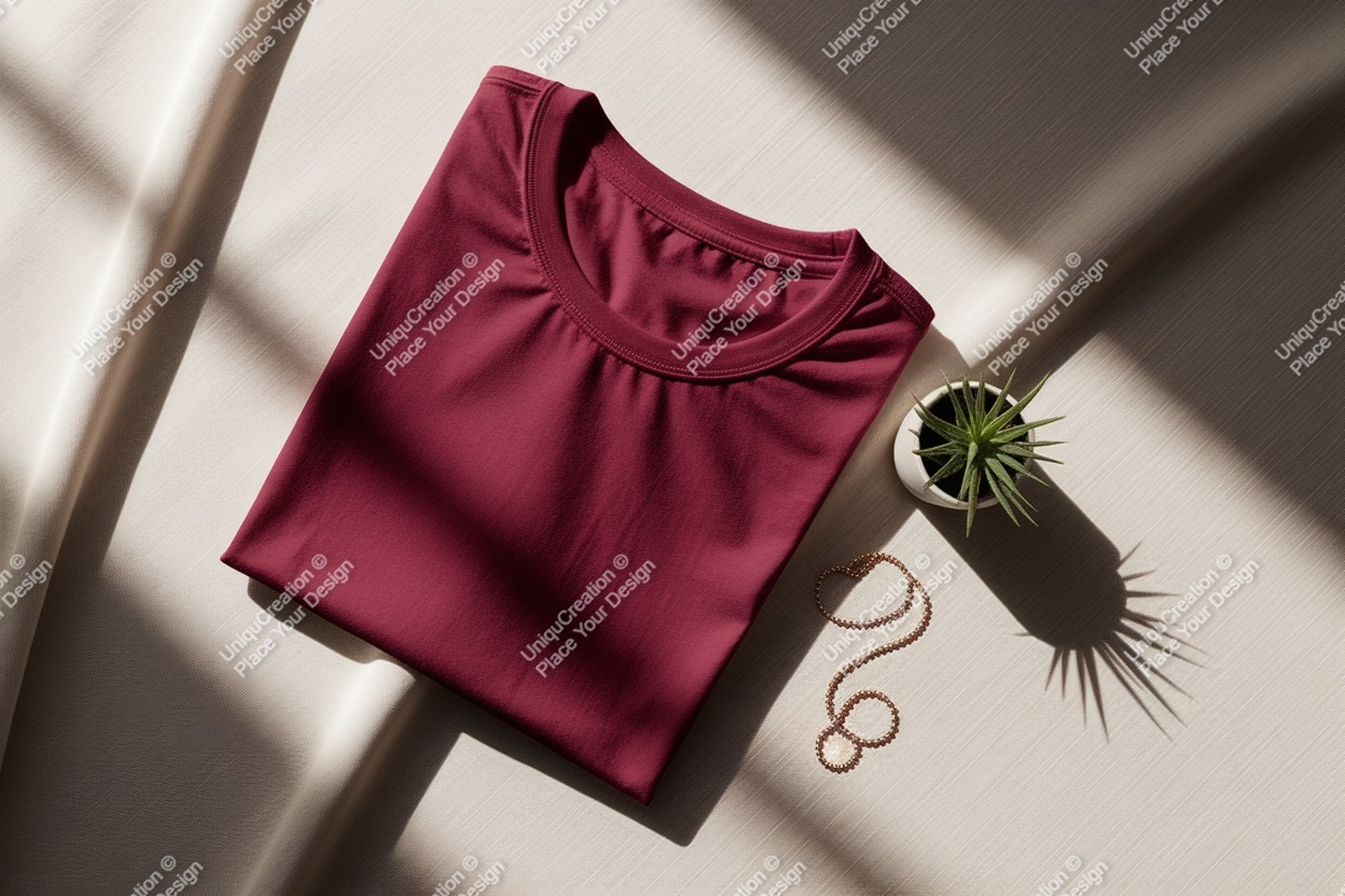 Fashion Shirt Clothing Mockup Apparel Jewelry Plant Accessory Necklace Maroon