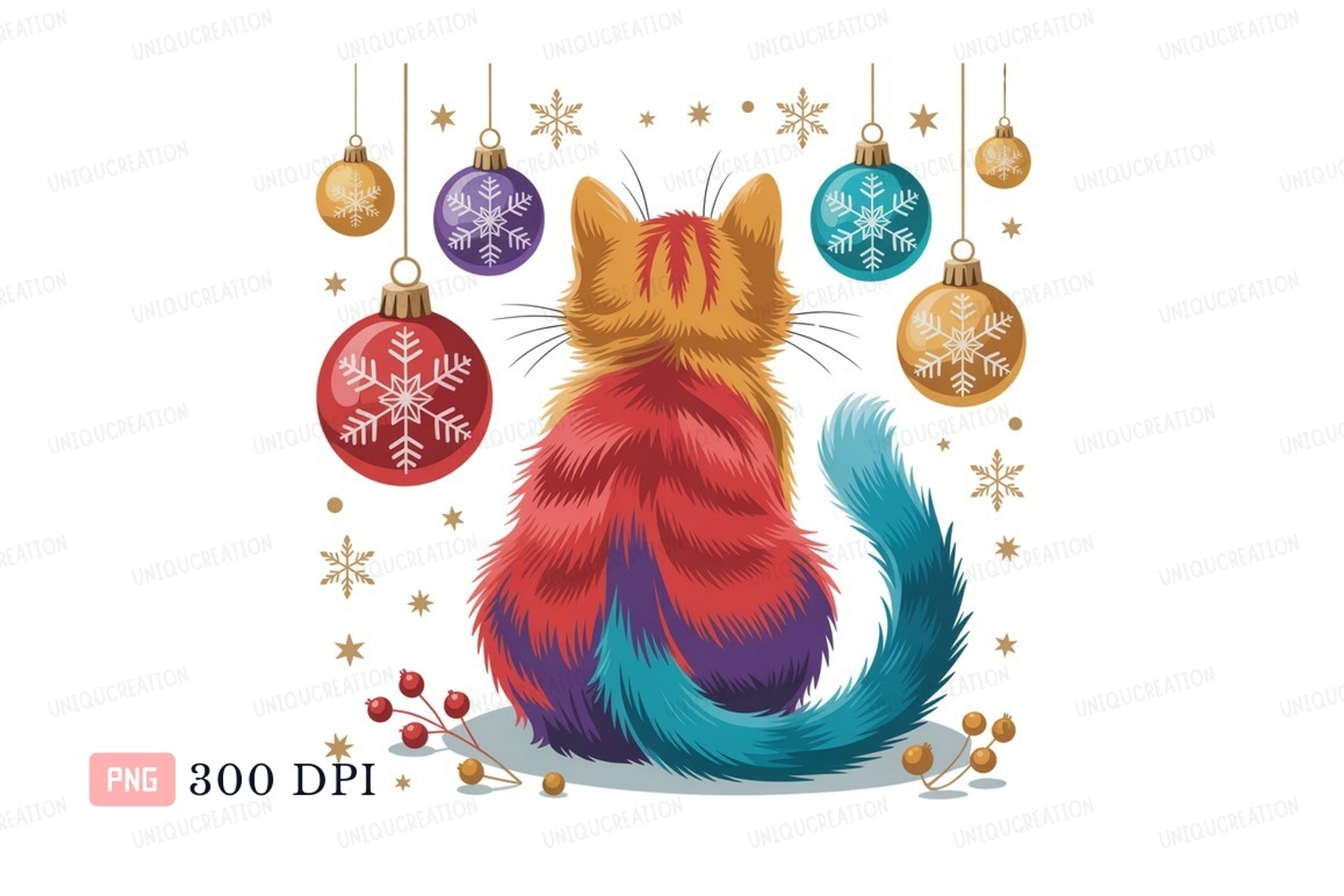 Similar Design Products to Colorful cat with holiday ornaments snowflake