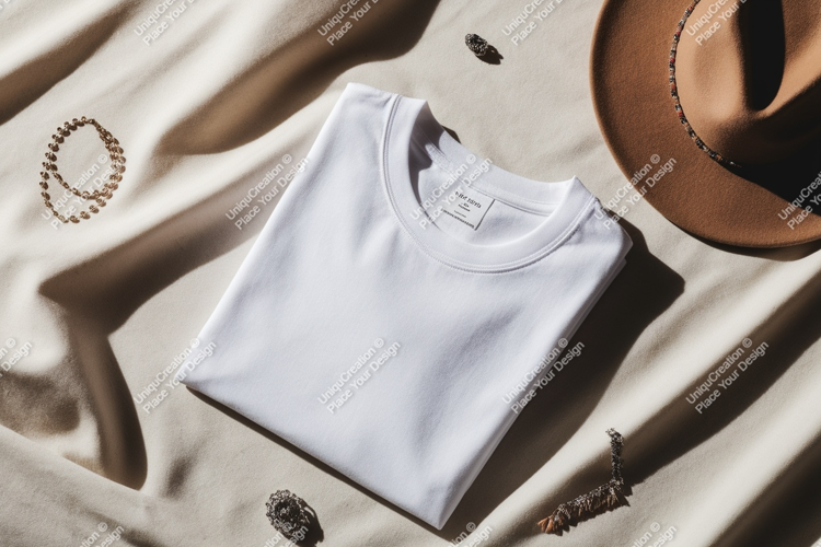 Similar Design Products to White t shirt with jewelry and hat mockup