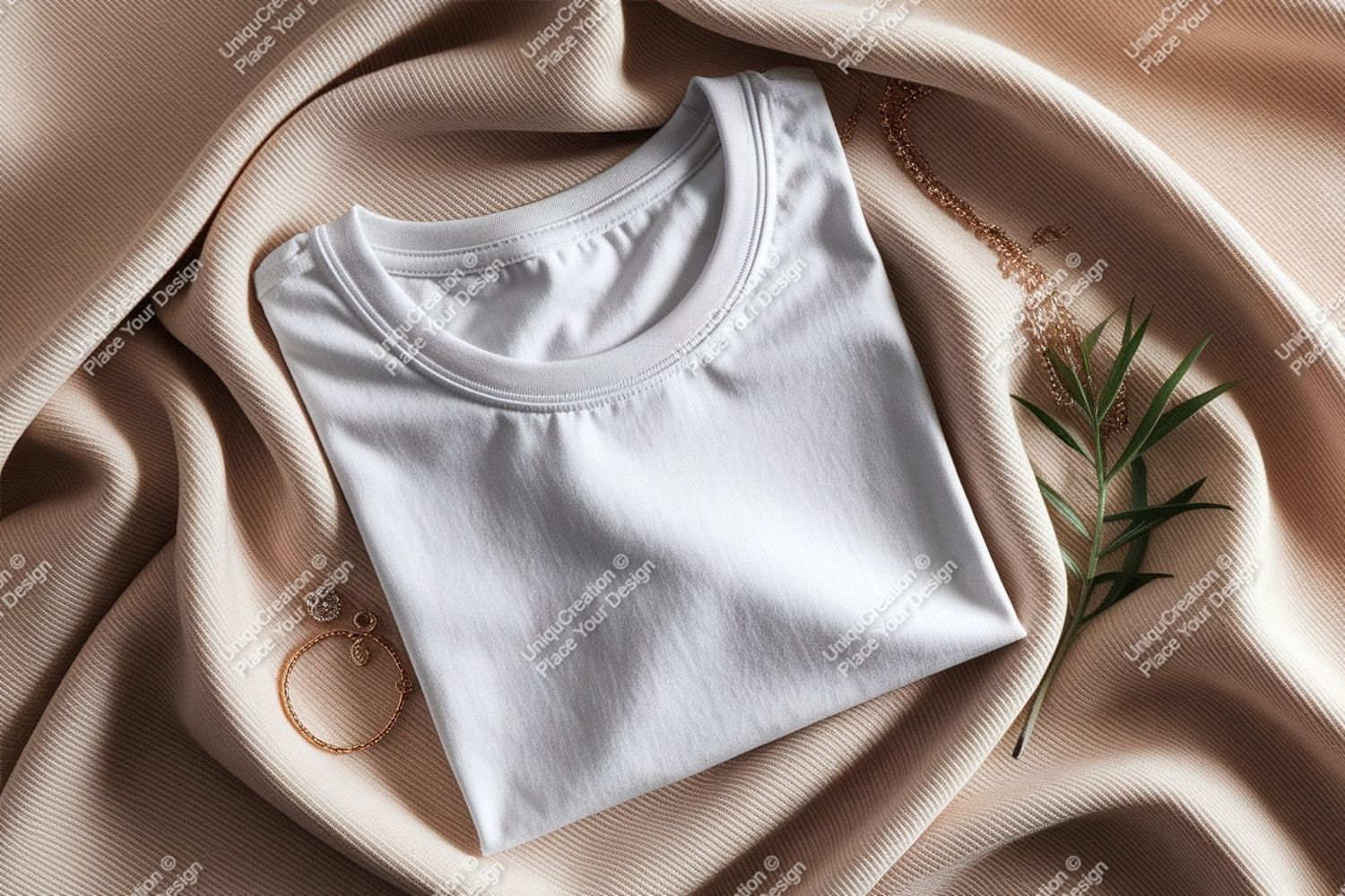 Fashion Shirt Clothing Mockup Fabric Beige White Necklace T Eucalyptus