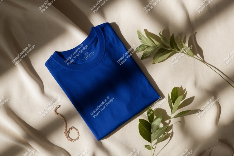 Blue shirt with green leaves and jewelry mockup fabric