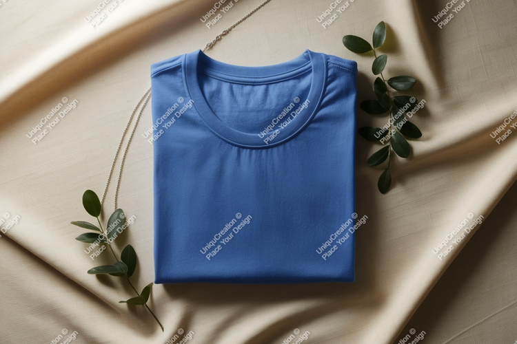 Fashion Shirt Clothing Green Mockup Leaves Fabric Blue Textile Garment