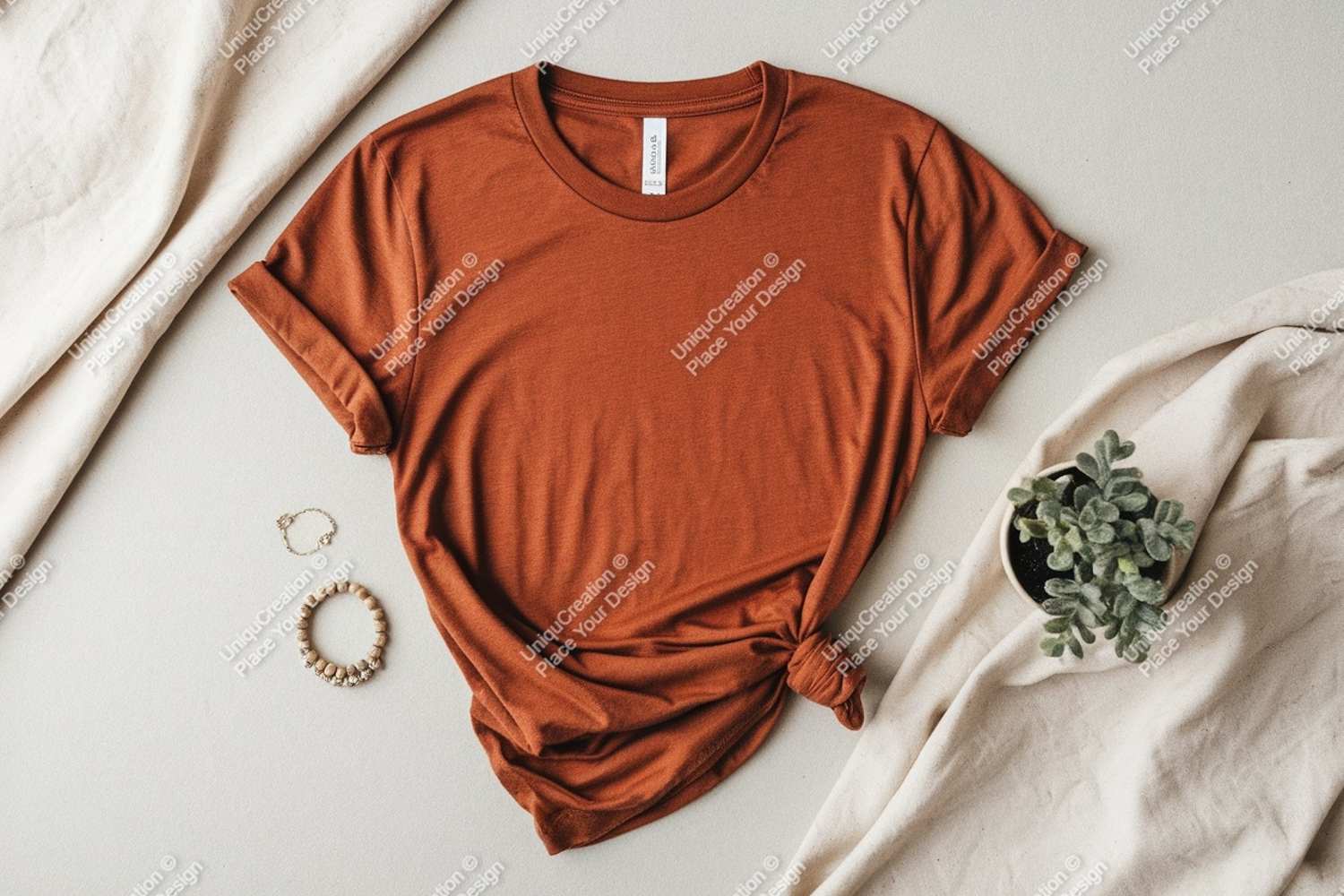 Terracotta tee with plant and jewelry shirt t-shirt example image 1