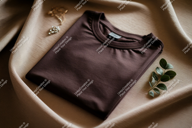 Similar Design Products to Folded brown t shirt with jewelry and plant image