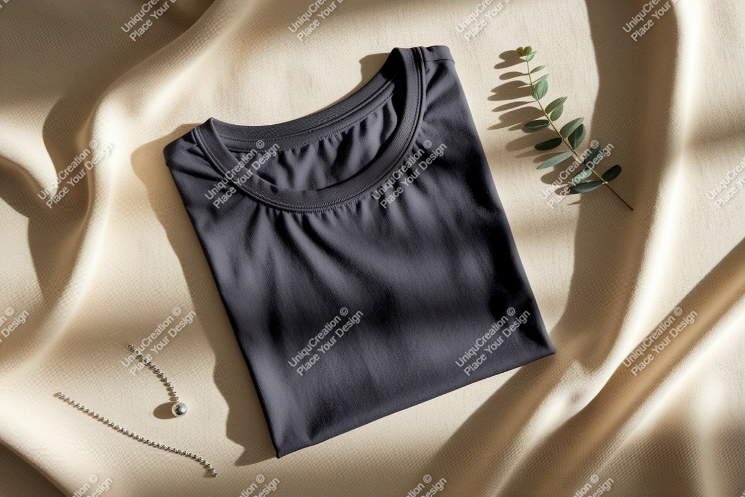 Elegant Shirt Minimalist Mockup Jewelry Dark Fabric Plant Gray T