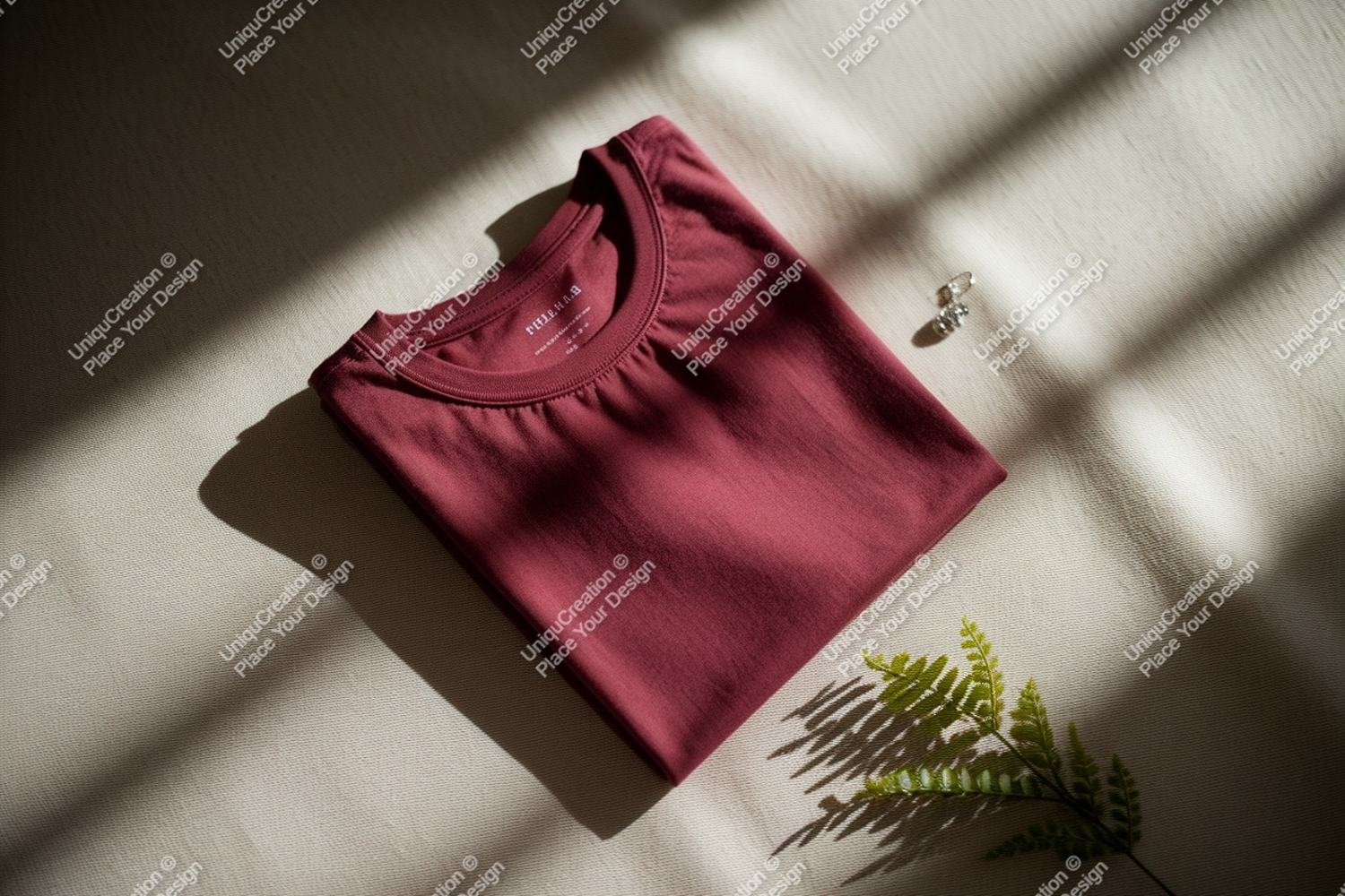 Similar Design Products to Maroon t shirt with jewelry and fern mockup
