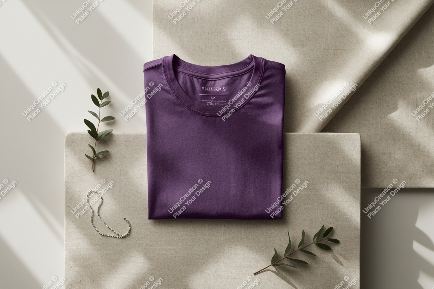 Light Shadow Shirt Mockup Jewelry Purple Studio Plant Folded T