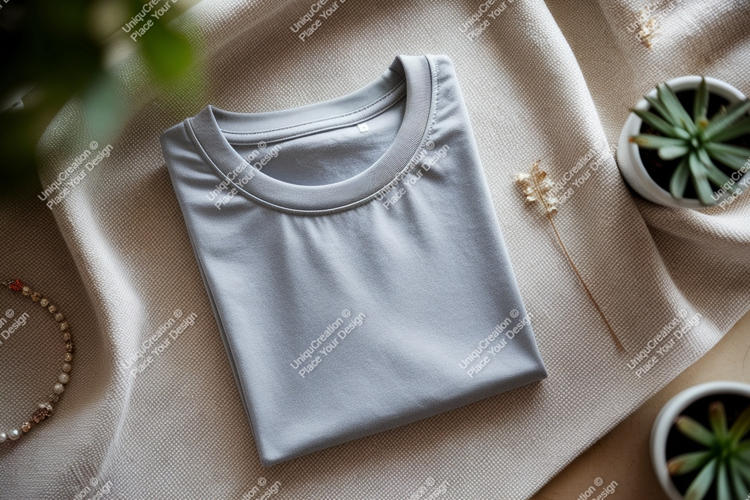 Similar Design Products to Folded grey t shirt with plants and jewelry mockup