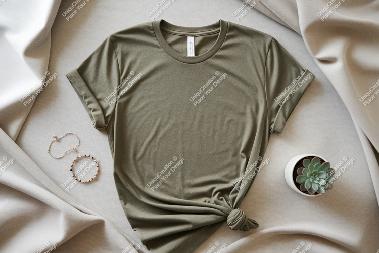 Similar Design Products to Olive green t shirt mockup with bracelets and succulent