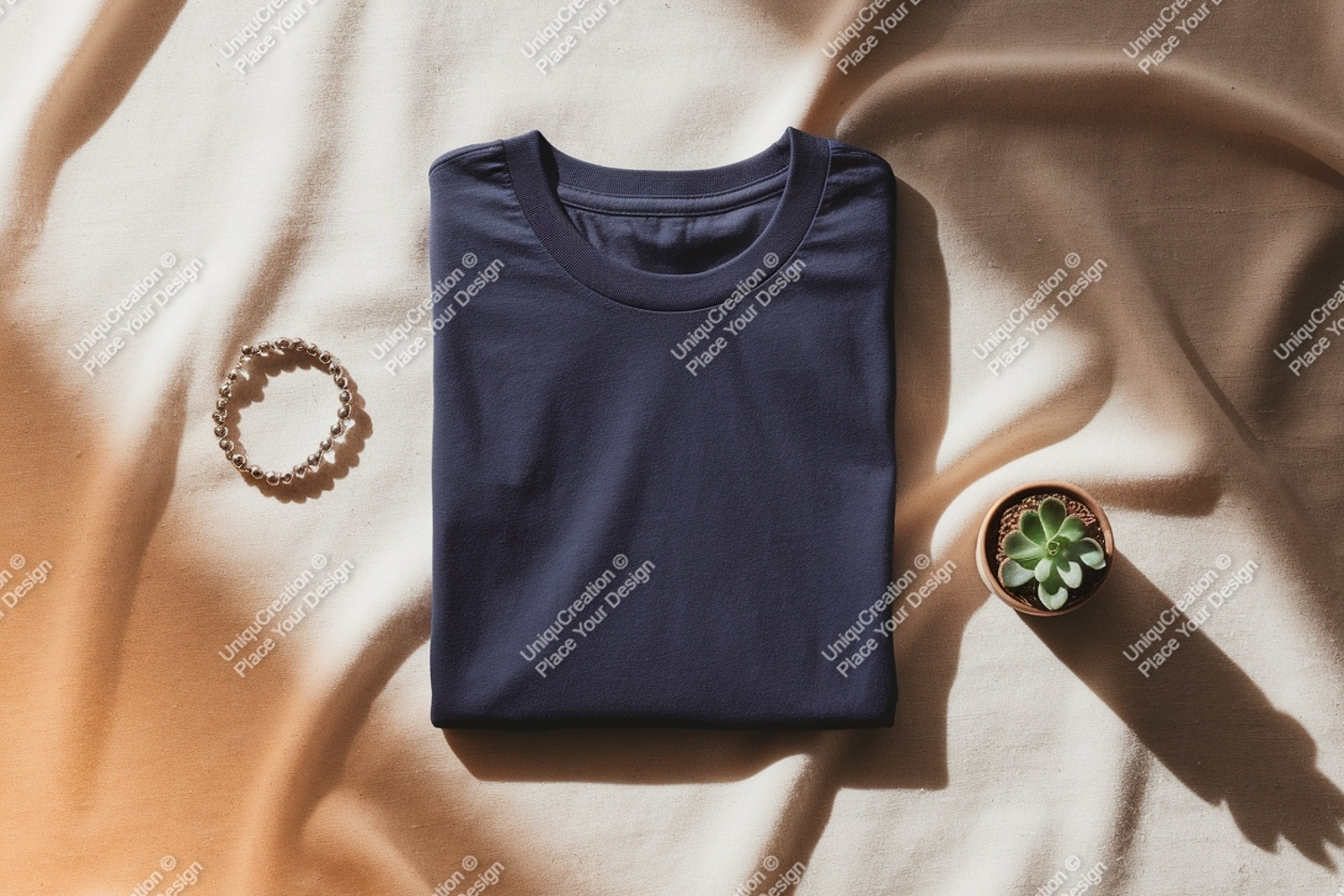 Navy blue t shirt beaded bracelet succulent plant tshirt example image 1
