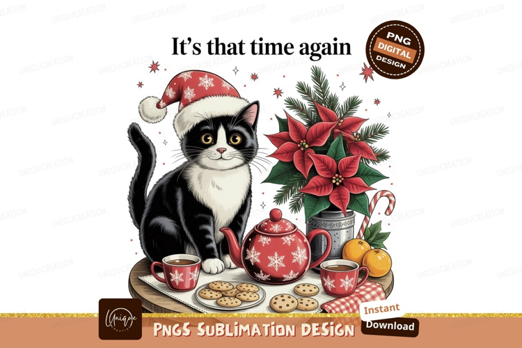 Similar Design Products to Black white cat wearing santa hat with christmas decorations