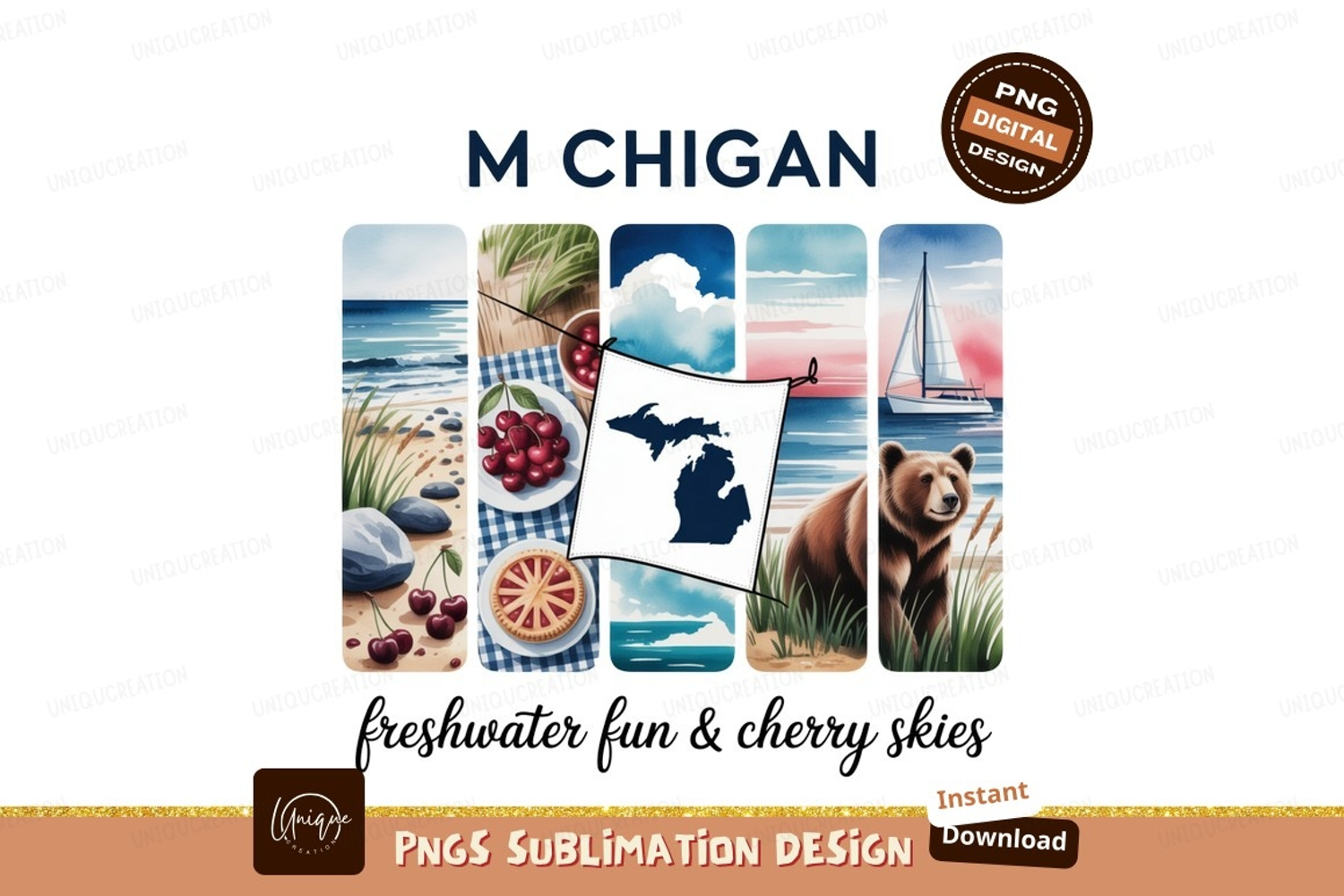 Michigan scenes cherry pie bear cherries sailboat example image 1