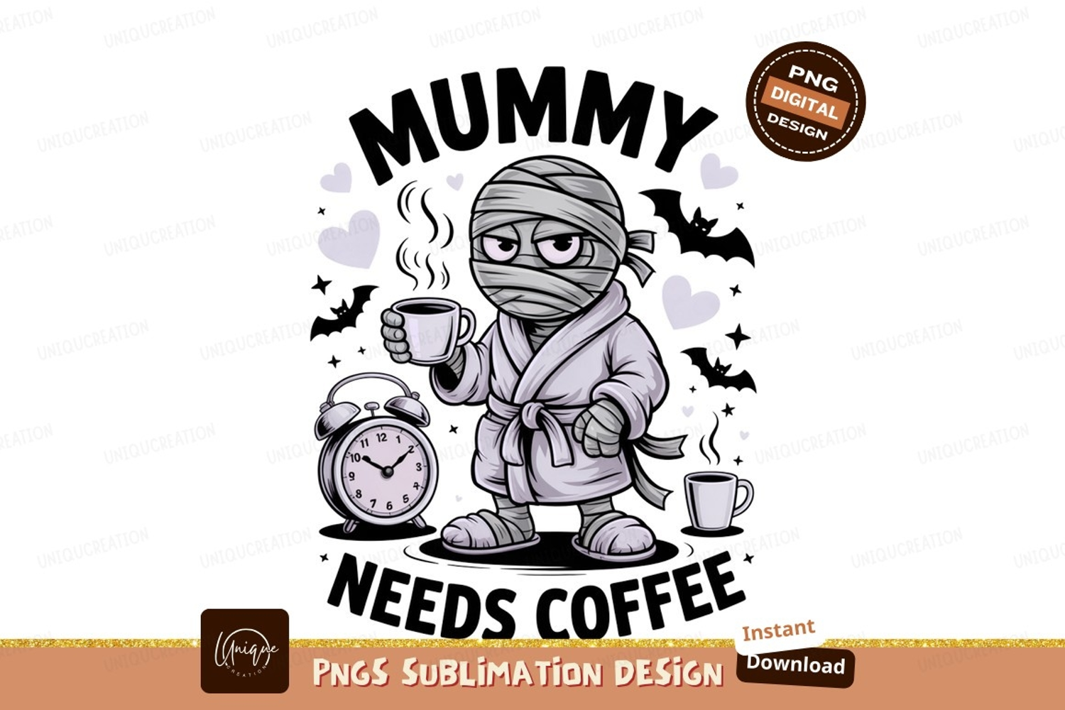 Similar Design Products to Mummy holding coffee cup with alarm clock image