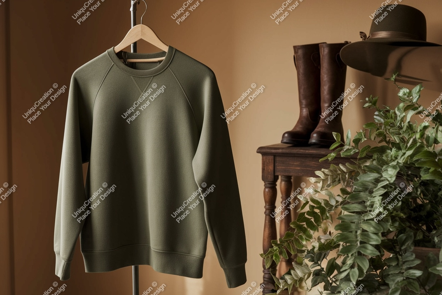 Similar Design Products to Olive green sweatshirt boots hat plant raglan sleeves